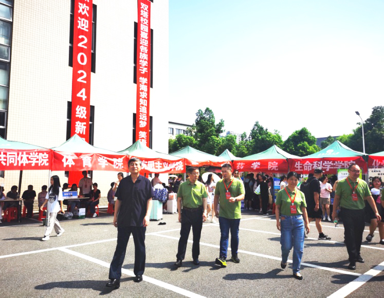 校領(lǐng)導(dǎo)走訪迎新現(xiàn)場(chǎng)。 謝心田攝