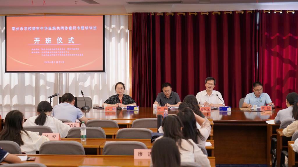 此次培訓由我校繼續教育學院(民族干部培訓中心)和中華民族共同體意識研究基地聯合承辦。培訓為期5天,培訓對象包括鄂州市、區民宗分管干部,高校及中小學老師,共計45人。培訓班將通過專家授課、現場教學、交流研討等多種形式,深入學習貫徹習近平總書記關于加強和改進民族工作的重要思想、重大意義及實踐要求,著力深化鑄牢中華民族共同體意識宣傳教育。