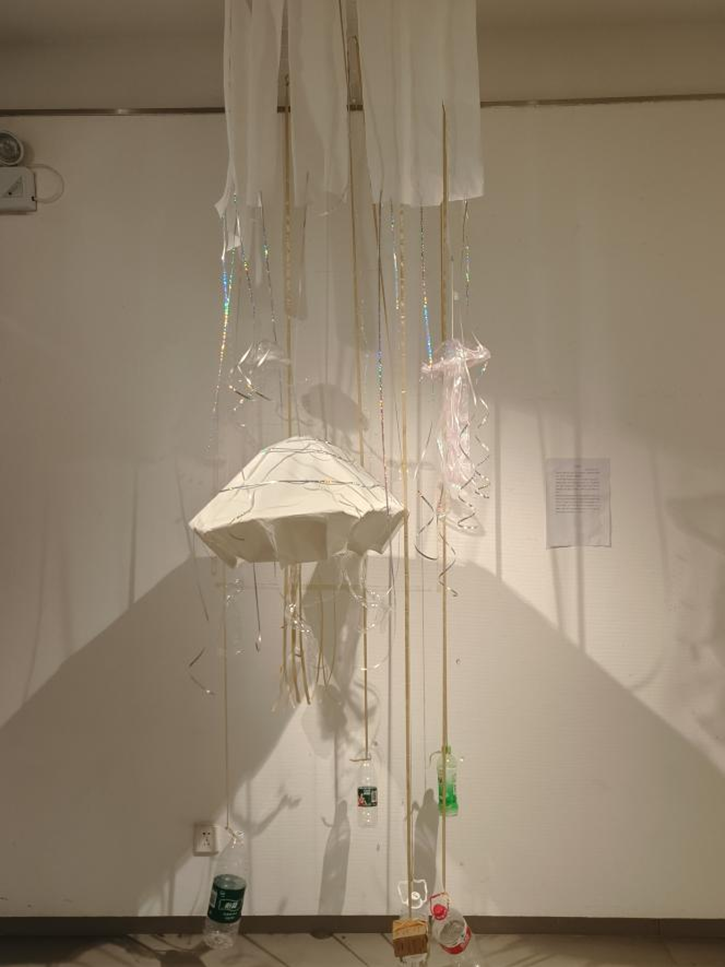 榪欏箙浣滃搧浠ユ搗媧嬫薄鏌撲負涓婚錛屾暣涓緗敱搴熺焊銆佸鏂欑摱鍜岀粏闀跨殑椋樺甫緇勬垚錛岃惀閫犲嚭涓縐嶅崕涓藉拰浠や漢璀﹂啋鐨勬晥鏋溿?姘存瘝褰㈣薄錛氱敾闈腑鏈鏄劇溂鐨勬槸鍑犲彧宸ㄥぇ鐨勬按姣嶉洉濉戯紝瀹冧滑鎮寕鍦ㄧ┖涓紝浠夸經鍦ㄦ按涓父鍔ㄣ傝繖浜涙按姣嶆槸鐢遍奔綰垮悐璧鋒潵鐨勶紝緇欎漢涓縐嶈交鐩堟紓嫻殑鎰熻銆傜劧鑰岋紝浠旂粏瑙傚療浼氬彂鐜幫紝榪欎簺鐪嬩技緹庝附鐨勬按姣嶅疄闄呬笂鏄敤搴熷純濉戞枡鍒舵垚鐨勶紝璞″緛鐫嫻鋒磱鐢熺墿鍥犳憚鍏ュぇ閲忓鏂欏瀮鍦捐屽彈鍒板▉鑳佺殑鐢熷懡鐘舵併?/p>