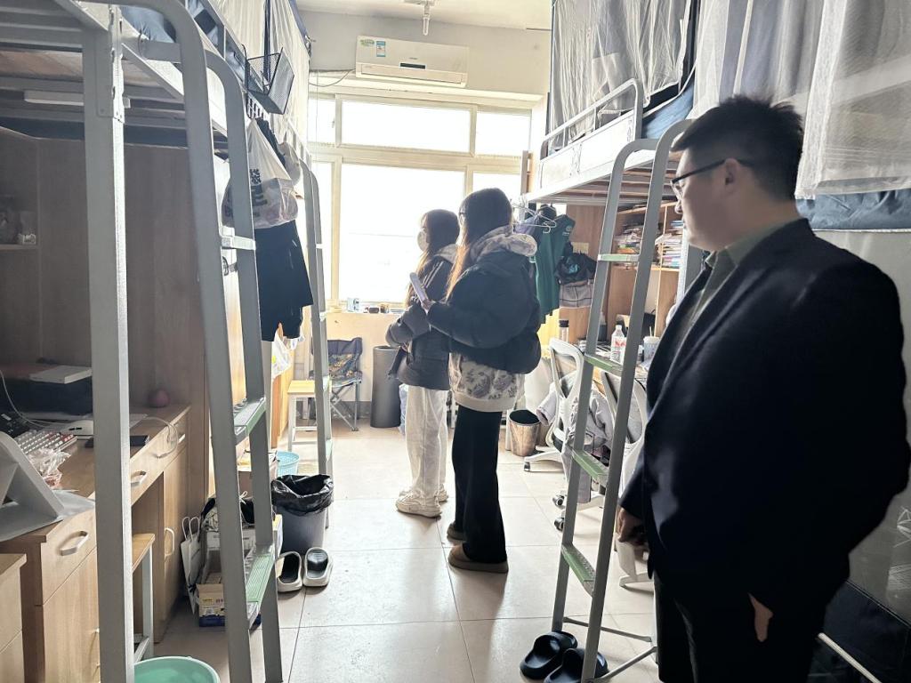 涓哄疄鍦頒簡瑙e鐢熺殑鐢熸椿銆佸涔犵姸鎬侊紝鍏蟲敞瀛︾敓鐢ㄧ數瀹夊叏鍜屽鑸嶅崼鐢燂紝钀ラ犲鉤瀹夋暣媧佺殑浣忓鐜鍜岃壇濂界殑瀵濆鏂囧寲姘涘洿錛?2鏈?鏃ヤ笅鍗堬紝緹庢湳瀛﹂櫌緇勭粐杈呭鍛樸佺彮瀵煎笀娣卞叆瀛︾敓瀹胯垗寮灞曟煡瀵濇椿鍔ㄣ?/p>