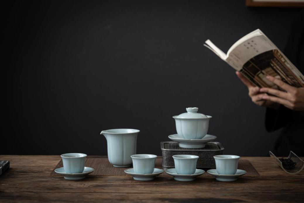 国家U非物质文化遗汝瓷创新设计 六瓣葵口盖碗套组