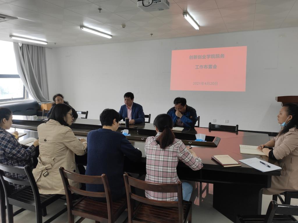 4月20日上午,創新創業學院在16號教學樓740室召開全體教職工會議,研究布置學院各項工作,會議由創新創業學院院長潘澤江教授主持。 創新創業學院副院長楊海健、馬自欣分別介紹了各自分管工作目前開展情況,潘澤江院長對學院整體工作進行了部署安排。會議研討了學院重點工作和建設發展情況。