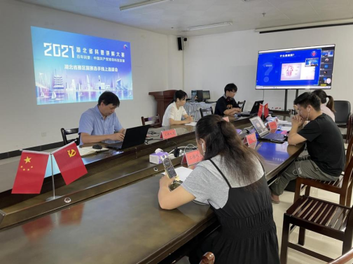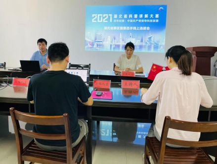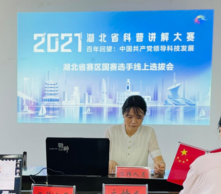 (2021年全國科普講解大賽湖北省賽區國賽選手線上選拔會工作組現場)