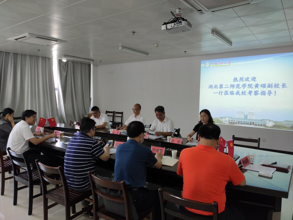 9月17日,湖北第二師范學院黨委常委、副校長、創新創業學院院長黃頌一行來我校調研座談工作,受到我校熱情接待,座談會在16號教學樓740室召開,我校黨委常委杜冬云副校長、實驗教學與工程訓練中心、創新創業學院及招生就業處負責人參加會議,實驗教學與工程訓練中心、創新創業學院黨總支書記藍華榮主持會議。