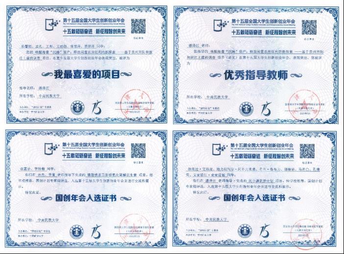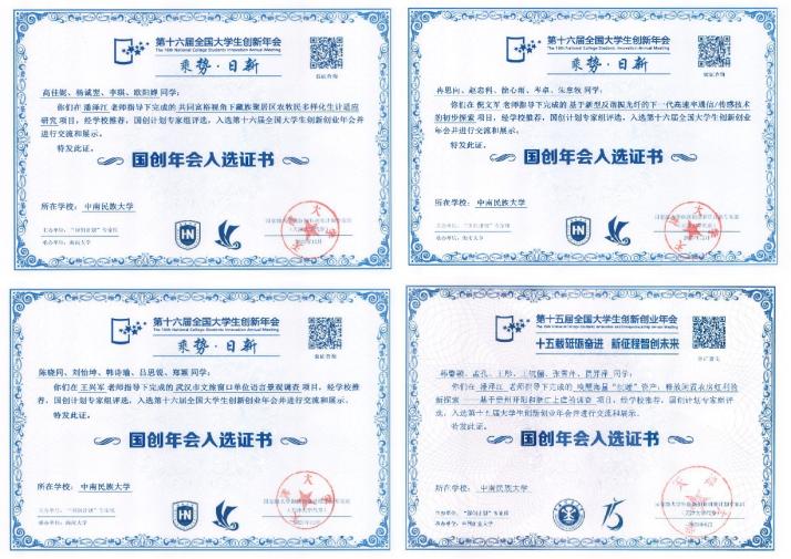 近年來,學校加大投入、強化資源整合,全面推進大學生創新創業教育和實踐活動,不斷激發大學生創新潛能和創業熱情,大力挖掘和轉化有發展潛力的創業項目,努力開創大學生創新創業教育工作的新局面。目前,學校大創項目的立項數由2022年的200余項增加到現在的350余項,學生參與覆蓋面大幅提高;同時,國創計劃項目質量穩步提升,2022年-2024年,共有8個項目入選第十五屆、十六屆、十七屆全國大學生創新創業年會,其中《喚醒海量“沉睡”資產:釋放閑置農房紅利的新探索》獲第十五屆全國大學生創新創業年會“我最喜愛的項目”獎(全國共20項),獲獎數量和質量位列全國民族類院校第一。潘澤江教授在年會上獲“優秀指導教師”獎。