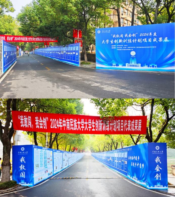 2024年10月29日-11月11日,“我敢闖 我會創”2024年度大學生創新訓練計劃項目成果展,在學校藕香池和清音潭之間馬路兩邊展出,來自21個學院的264個大學生創新訓練項目(以下簡稱“大創項目”)代表成果參展。本次成果展由創新創業學院、教務處主辦,由黨委宣傳部、各學院、石榴籽創夢空間(教育部國家級創新創業教育實踐基地)、我校創服活動管理辦公室協辦。