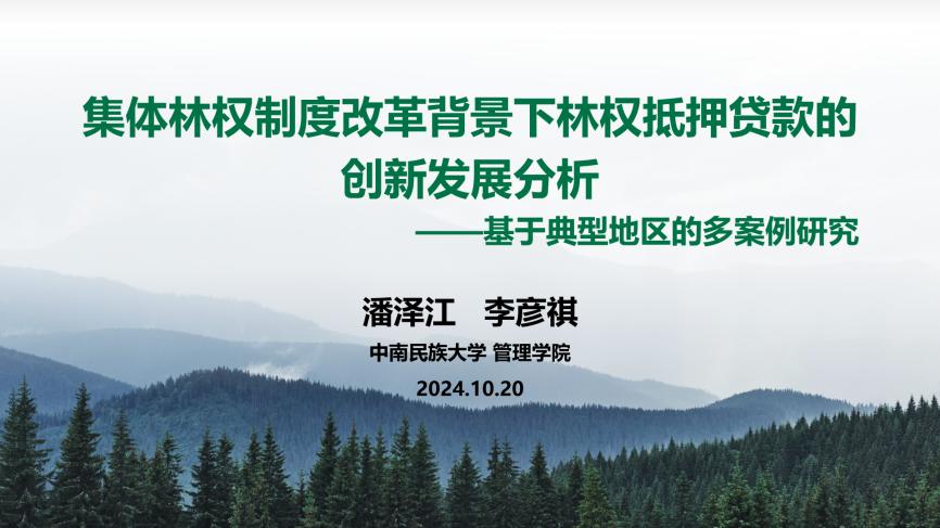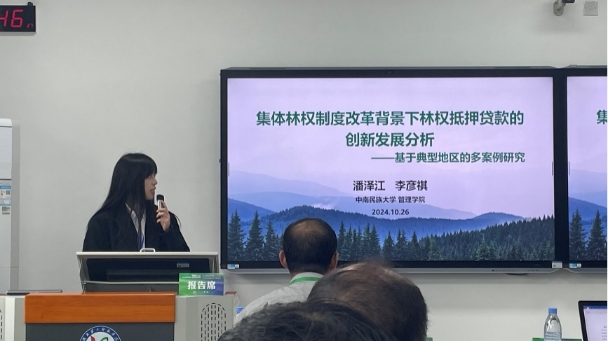 潘澤江教授指導(dǎo)的研究生3篇學(xué)術(shù)論文——李彥祺的論文《集體林權(quán)制度改革背景下林權(quán)抵押貸款的創(chuàng)新發(fā)展分析》、余長軒的論文《長江經(jīng)濟(jì)帶省份綠色發(fā)展效率及其影響因素研究》、黃浩的論文《集體林權(quán)制度改革背景下林下經(jīng)濟(jì)發(fā)展路徑研究》入選論壇。李彥祺的論文圍繞“林權(quán)抵押貸款創(chuàng)新發(fā)展”主題,結(jié)合生態(tài)產(chǎn)品價值實現(xiàn)、融資風(fēng)險管理、市場化林權(quán)收儲擔(dān)保與抵押品核算評估等問題進(jìn)行了現(xiàn)場匯報。