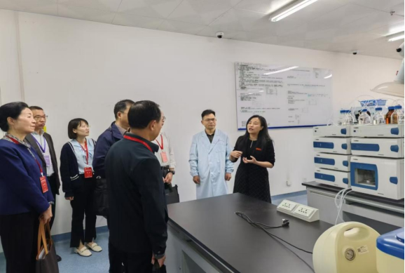 教育部本科教育教學(xué)審核評估專家參觀中國國際大學(xué)生創(chuàng)新大賽(2024)《帕默康創(chuàng)——醫(yī)用血藥濃度數(shù)智化監(jiān)測引領(lǐng)者》國家級銀獎項(xiàng)目實(shí)驗(yàn)室,李效寬供圖。