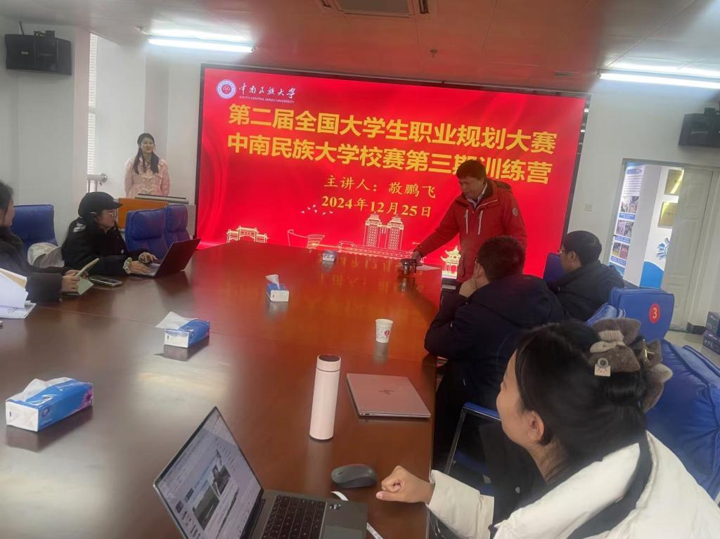 第二屆全國大學生職業規劃大賽省賽訓練營近日在中南民族大學創新創業學院圓滿結束。本月19日、21日、25日創新創業學院邀請華中科技大學就業指導與服務中心主任敬鵬飛、中南民族大學招生就業處副處長朱軍、深信服科技股份有限公司華中區人力資源總監王定濤等多位校內外專家為我校將要晉級省賽的選手開展為期三天省賽訓練營實戰指導。本次訓練營作為大賽的重要組成部分,旨在進一步提升學生的職業生涯規劃能力,增強其就業競爭力,為即將到來的省復賽做好充分準備。