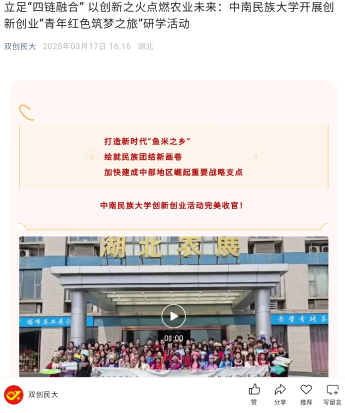 七、2025年3月17日,雙創民大公眾號報道,鏈接https://mp.weixin.qq.com/s/VCRfBZTquYfU4EU9dPp_gw