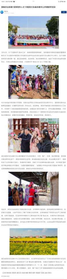 壟上行新聞:探秘農(nóng)業(yè)發(fā)展 培育青年人才 中南民大在省農(nóng)展中心開(kāi)展研學(xué)活動(dòng)