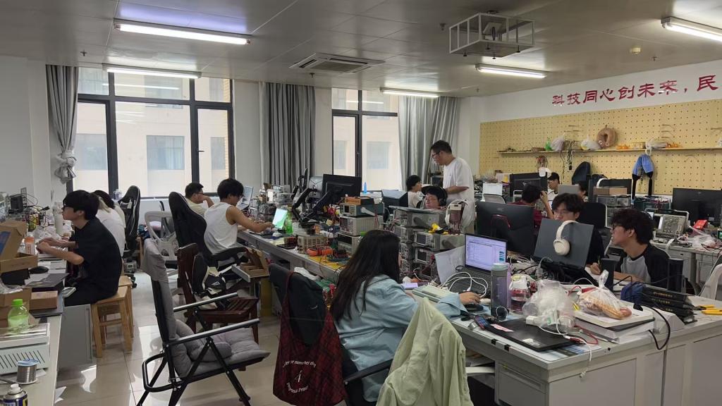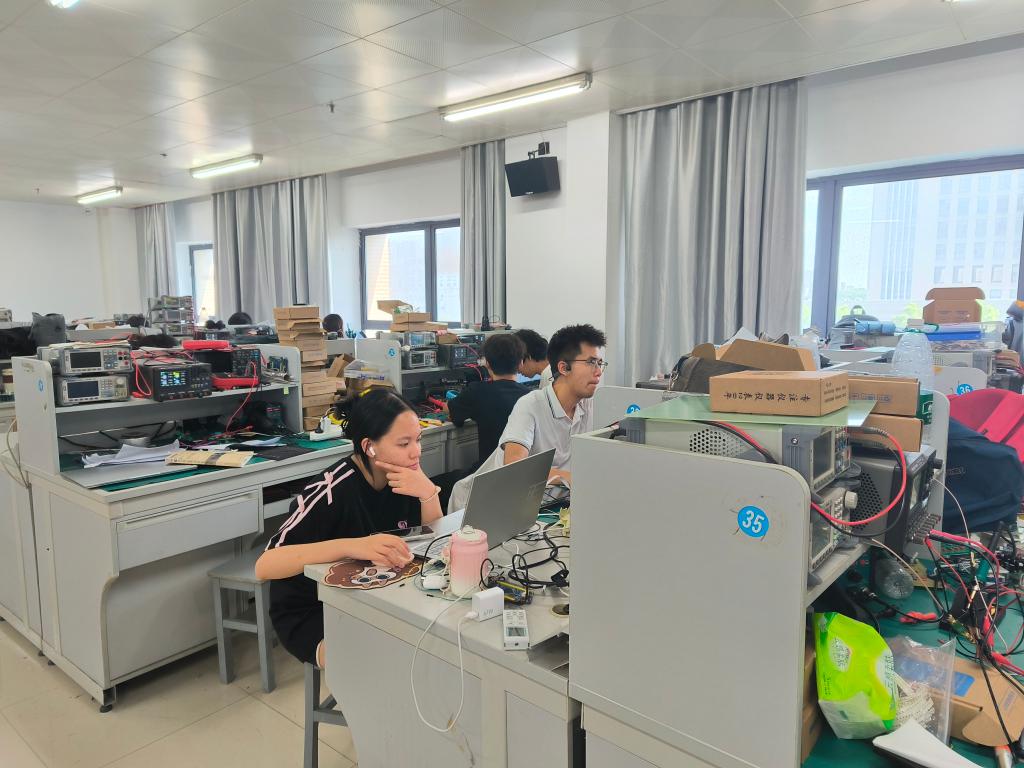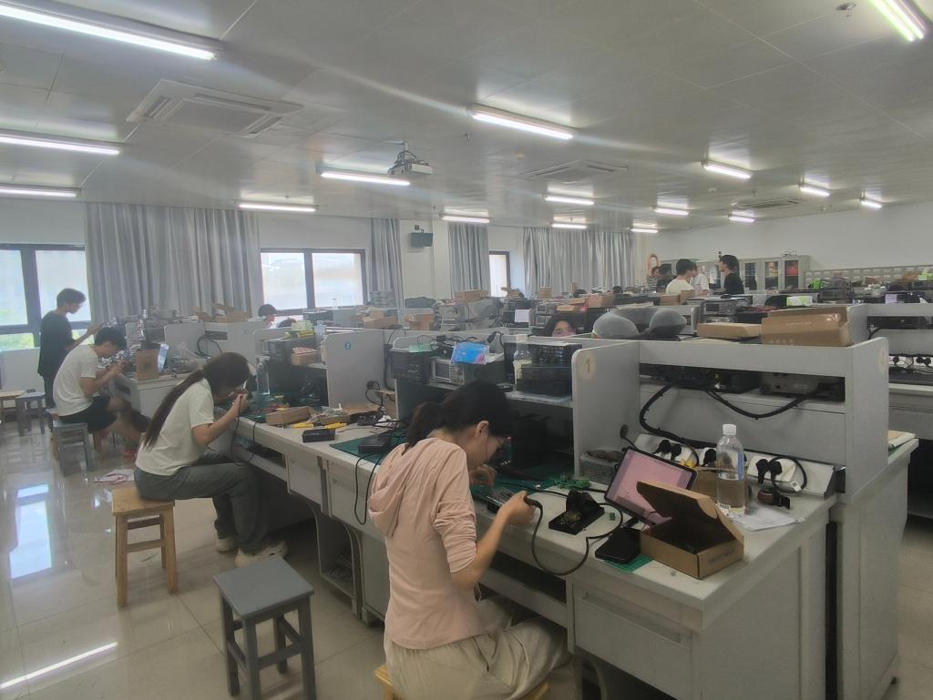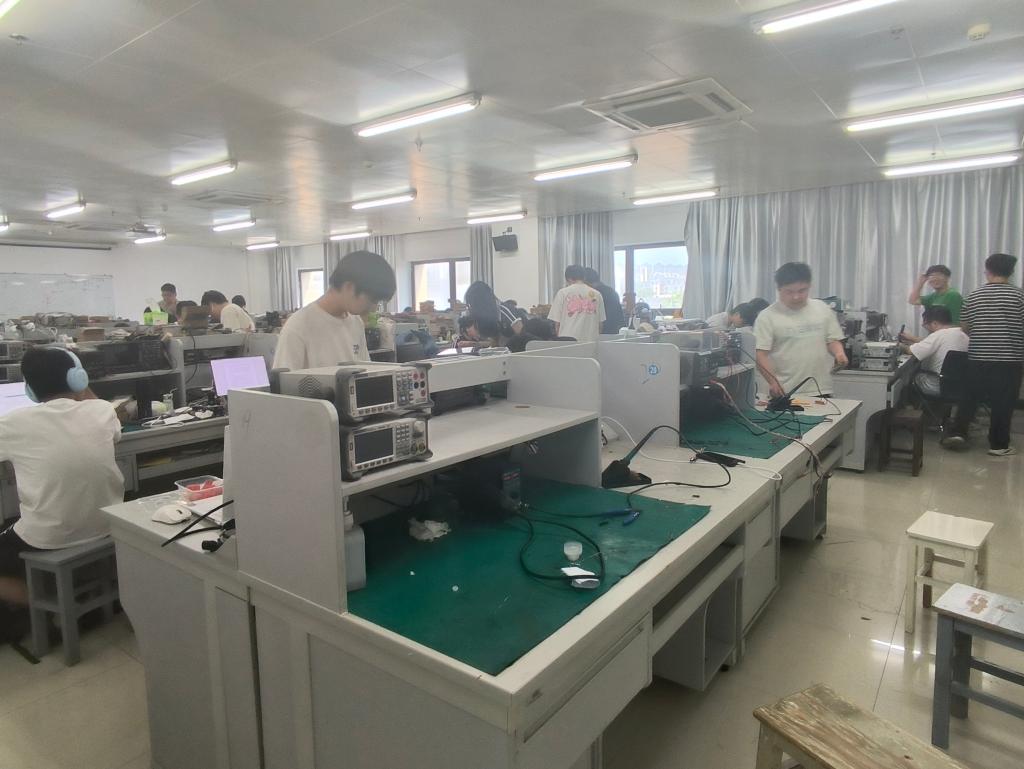 隨著開賽指令的下達,各參賽隊伍迅速進入備戰(zhàn)狀態(tài),桌上的電路板、芯片、導線等元器件瞬間被賦予了“生命”。賽場內此起彼伏的鍵盤聲、儀器調試的蜂鳴聲,交織成一曲屬于科技愛好者的 “交響樂”。