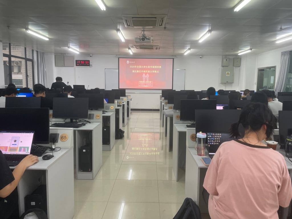我校參賽師生合影 為保障此次競(jìng)賽有序開展,賽前各相關(guān)部門提前謀劃、協(xié)同發(fā)力,做足了準(zhǔn)備工作。創(chuàng)新創(chuàng)業(yè)學(xué)院、數(shù)學(xué)與統(tǒng)計(jì)學(xué)學(xué)院緊密合作,精心組織了數(shù)學(xué)建模暑期培訓(xùn)班,通過系統(tǒng)的課程講解、案例分析和實(shí)戰(zhàn)演練,為參賽學(xué)子夯實(shí)理論基礎(chǔ)、提升建模技能,全力培育競(jìng)賽后備力量;本科生院實(shí)驗(yàn)教學(xué)與工程訓(xùn)練中心則充分發(fā)揮資源優(yōu)勢(shì),為競(jìng)賽提供了設(shè)施完善、環(huán)境優(yōu)良的專屬考場(chǎng),并配備專業(yè)的軟件技術(shù)和網(wǎng)絡(luò)支持,確保競(jìng)賽期間設(shè)備穩(wěn)定、操作順暢。 8月底,在前期培訓(xùn)基礎(chǔ)上,數(shù)模教練組秉持公平、公正、公開的原則,綜合考量學(xué)員課后練習(xí)的完成質(zhì)量、解題思路的創(chuàng)新性以及考勤的規(guī)整性,從300余名參加培訓(xùn)的數(shù)學(xué)建模愛好者中,嚴(yán)格遴選出47支優(yōu)秀團(tuán)隊(duì)代表學(xué)校參賽。每一支隊(duì)伍都承載著學(xué)校的期望,代表著民大學(xué)子在數(shù)學(xué)建模領(lǐng)域的扎實(shí)功底。 本屆數(shù)模競(jìng)賽于9月4日18:00正式啟動(dòng),141名參賽選手迅速進(jìn)入狀態(tài),在16號(hào)教學(xué)樓2樓2區(qū)的考場(chǎng)內(nèi)開啟了為期 3天4夜的緊張賽程。期間,選手們圍繞競(jìng)賽題目,分工協(xié)作、密切配合,時(shí)而專注分析問題、構(gòu)建數(shù)學(xué)模型,時(shí)而敲擊鍵盤、運(yùn)用計(jì)算機(jī)技術(shù)進(jìn)行數(shù)據(jù)處理與求解,在高強(qiáng)度的比拼中展現(xiàn)出扎實(shí)的專業(yè)素養(yǎng)和頑強(qiáng)的拼搏精神。