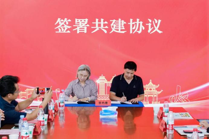 武漢青創中心主任鐘利與中南民族大學創新創業學院院長潘澤江簽署共建協議,陳郡攝