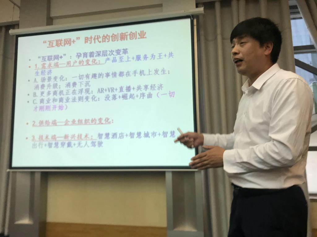 潘澤江教授安排下一步的賽事工作。他強(qiáng)調(diào)大賽是“互聯(lián)網(wǎng)+”時(shí)代的創(chuàng)新創(chuàng)業(yè),所有學(xué)科都可以參賽,并介紹了商業(yè)計(jì)劃書的寫作技巧,分享了幾個(gè)實(shí)用的模板,代表創(chuàng)新創(chuàng)業(yè)學(xué)院表態(tài)做好大賽的保障、組織與落實(shí)工作。