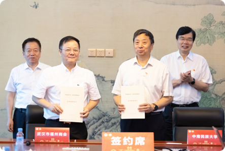 三、校企合作活動一覽 01簽約儀式 為促進校、商、企合作交流新模式的探索和發展,我校與武漢市福州商會舉行了戰略合作簽約儀式。該活動旨在推動“以黨建促共建、以共建促合作、以合作促發展”的工作新格局形成。40余人參加了會議,包括武漢市工商聯副主席楊松民、武漢市福州商會會長陳強、我校校長李金林、副校長杜冬云等領導及相關單位負責人、企業家和大學生創業代表。
