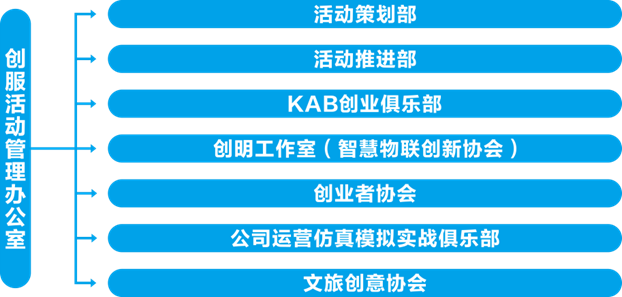 02 KAB創業俱樂部 中南民族大學KAB創業俱樂部成立于2009年6月,隸屬于中南民族大學創新創業學院,由創新創業學院潘澤江院長和張楠老師指導,接受武漢大學生創新創業服務中心和武漢青年創業培訓中的指導支持,為培養大學生的創業意識和創業能力而專門開發的教育項目。俱樂部以“讓更多人想創業,讓更多人能創業”為宗旨,主要從事創業 教育服務方面的工作,同時提升我校大學生的創業能力營造校內活躍的創業氛圍,影響和幫助更多的人實現自己的夢想。
