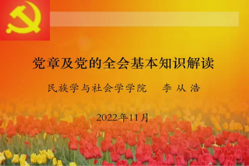 培訓(xùn)班第三講由民族學(xué)與社會學(xué)學(xué)院黨委書記李從浩主講。他以《黨章及黨的全會基本知識解讀》為題,圍繞黨章的歷史演變、黨的全會知識介紹、大學(xué)生如何學(xué)習(xí)黨的理論三個方面進(jìn)行講解,詳細(xì)介紹了黨章的涵義及發(fā)展歷程,并從會議構(gòu)成、召開時間、主要議題、制度安排四個方面解讀中國共產(chǎn)黨全國代表大會。他結(jié)合自身工作經(jīng)歷,要求學(xué)員們端正思想態(tài)度,深刻理解黨章內(nèi)涵,切實踐行黨章內(nèi)容,成為有理想、有學(xué)問、有才干的實干家。