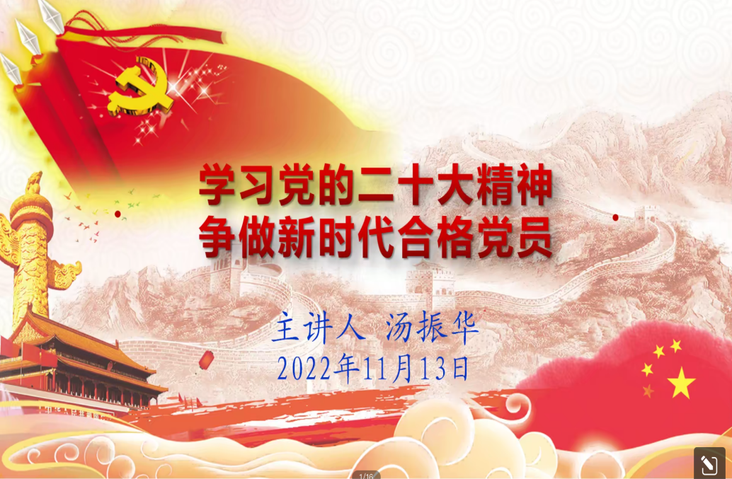 中華民族共同體研究院黨總支書記湯振華以《學(xué)習(xí)黨的二十大精神,爭做新時代合格黨員》為主題,著重講解了黨的二十大報告的主要內(nèi)容、中國式現(xiàn)代化的五個特色與本質(zhì)要求,強(qiáng)調(diào)為民造福是立黨為公、執(zhí)政為民的本質(zhì)要求,全面建設(shè)社會主義現(xiàn)代化國家、全面推進(jìn)中華民族偉大復(fù)興的關(guān)鍵在黨,希望學(xué)員們認(rèn)真學(xué)習(xí)黨的二十大精神,堅定理想信念、站穩(wěn)政治立場、提升道德品質(zhì)、正確對待得失、嚴(yán)格遵規(guī)守紀(jì),爭做新時代合格黨員。