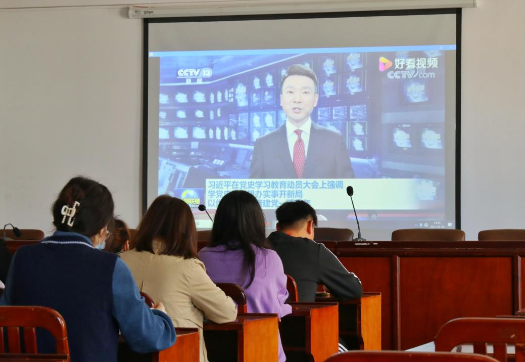學生黨員帶領全體成員宣讀入黨誓詞以及《中國共產黨章程》總綱,通過觀看視頻集體學習了習近平總書記在黨史學習教育動員大會上的講話??倳浽谥v話中關于黨史學習中提出要做到學史明理、學史增信、學史崇德、學史力行,教育引導全黨同志學黨史、悟思想、辦實事、開新局。全體黨員根據學習要求認真學習原文,做好筆記,深入思考。