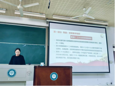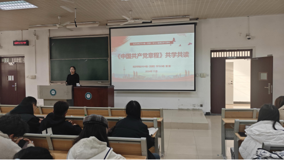 郭修齊介紹了《經濟學院2024級黨章學習小組工作方案》。她以《<中國共產黨章程>共學共讀》為題,向大家介紹了《黨章》的地位和作用、黨的二十大對《黨章》的修改以及認真學習和嚴格執行《黨章》的意義,強調學習《黨章》是加強黨的建設的一項基礎性經常性工作,是志向加入中國共產黨的青年大學生的應盡義務和莊嚴責任。