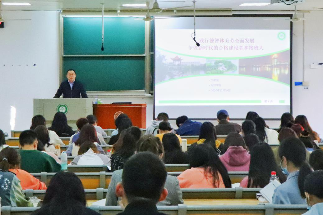 經濟學院黨委副書記劉君強以《踐行德智體美勞全面發展,爭做新時代的合格建設者和接班人》為主題做開班動員和第一講,強調學員們要通過加強學習,深刻掌握黨的理論知識和發展歷史,不斷促進德智體美勞全面發展,從嚴格要求自己和熱心服務他人做起,在實踐中用馬克思主義理論、觀點來分析社會現象和解決問題,成為思想上和行動中的堅定的馬克思主義者。
