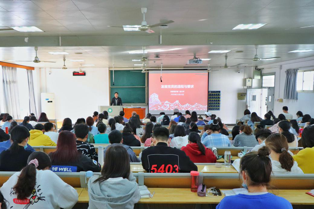 校黨委組織部副部長錢文彬在《發展黨員的流程與要求》主題講解中談到,在全面加強黨的建設,全面從嚴治黨的大背景下,發展黨員要深入貫徹黨的“五個基本”原則,遵循十六字總要求,始終把政治標準放在首位,堅持入黨自愿原則和個別吸收原則,學會慎重發展、均衡發展,禁止突擊發展,反對關門主義,積極主動配合黨支部開展發展黨員工作,對自己和黨支部負責。