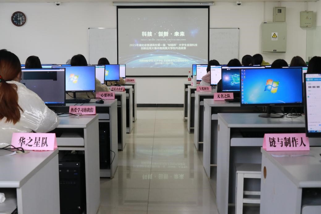 本站訊(記者:韓子茗)為適應(yīng)金融行業(yè)人才需求新變化,提升大學(xué)生金融科技創(chuàng)新應(yīng)用能力,11月27日下午,經(jīng)濟(jì)學(xué)院與實(shí)驗(yàn)教學(xué)與工程訓(xùn)練中心、創(chuàng)新創(chuàng)業(yè)學(xué)院于16號(hào)教學(xué)樓222教室聯(lián)合舉辦了湖北省普通高校第一屆“知鏈杯”大學(xué)生金融科技創(chuàng)新應(yīng)用大賽中南民族大學(xué)校內(nèi)選拔賽。湖北知鏈科技有限公司總經(jīng)理周楊、湖北知鏈科技有限公司田展飛、經(jīng)濟(jì)學(xué)院副院長(zhǎng)熊芳、創(chuàng)新創(chuàng)業(yè)學(xué)院經(jīng)濟(jì)管理實(shí)驗(yàn)教學(xué)中心主任王蕾、經(jīng)濟(jì)學(xué)院團(tuán)委書記高無盡出席本次比賽。