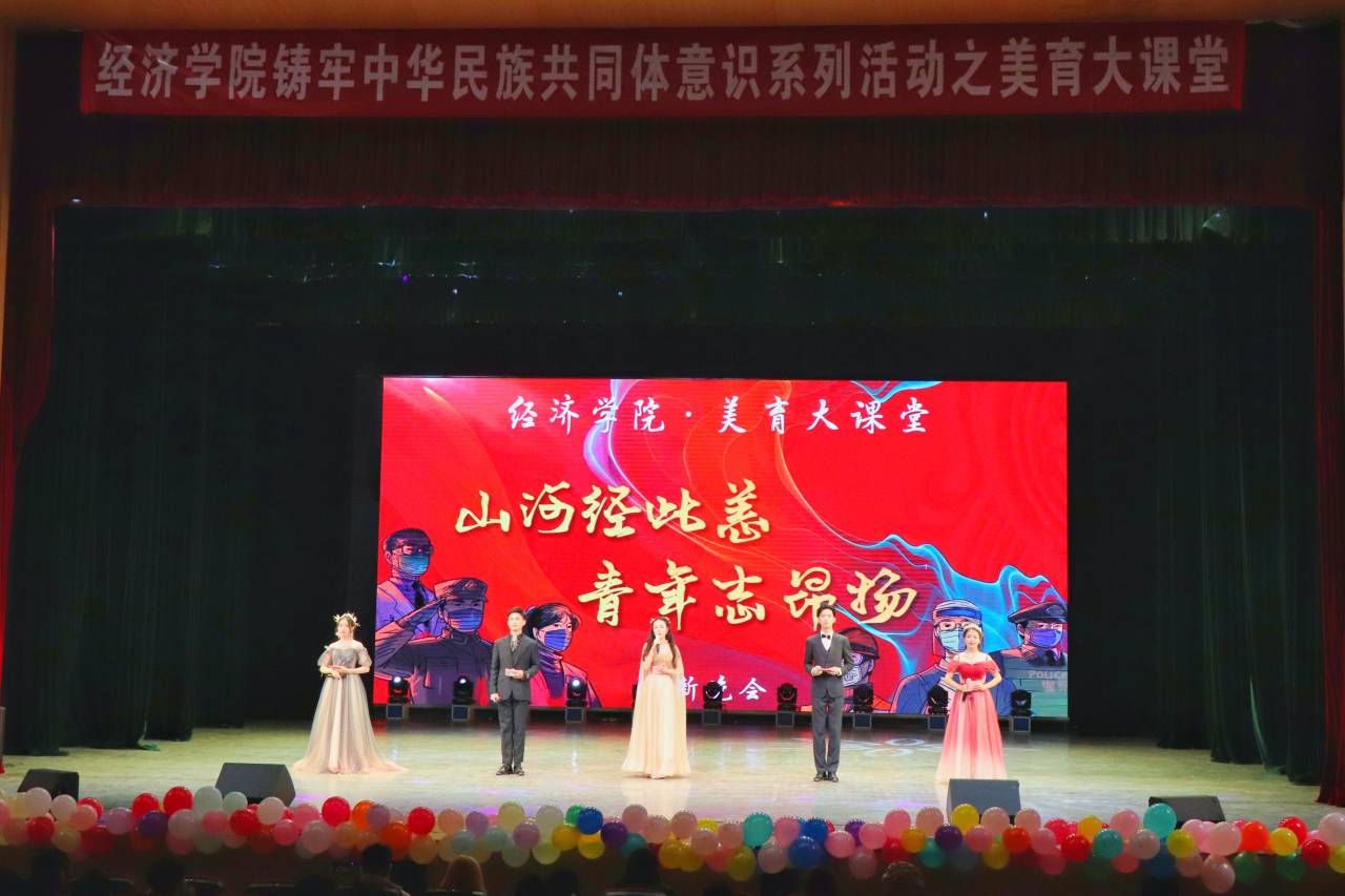 本站訊(記者:何詩麒 周贊)為積極響應黨中央關于“加強開展高校美育工作,扎實有效推進美育事業”的號召,創新拓展藝術思政開展的多樣化途徑,發揮藝術滌蕩心靈、塑造品格、陶冶性情的重要作用,做到將美育建設和鑄牢中華民族共同體意識有效融合。11月21日晚,經濟學院在大禮堂舉辦“鑄牢中華民族共同體意識”系列活動之美育大課堂,學院黨委書記柯尊韜、黨委副書記劉君強和各年級輔導員參加。