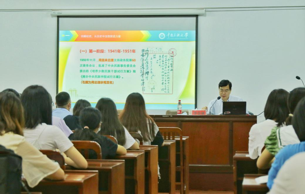 李校長生動又富含深情的講授讓同學們深刻感受到了民大七十年厚重的發展積淀,感受到學校七十年辦學歷程、豐碩的辦學成果和篤信好學、自然寬和的校訓精神。大家表示,將牢記當代民大人的責任與使命,立志聽黨話、跟黨走,與時代共命運,與祖國同呼吸。