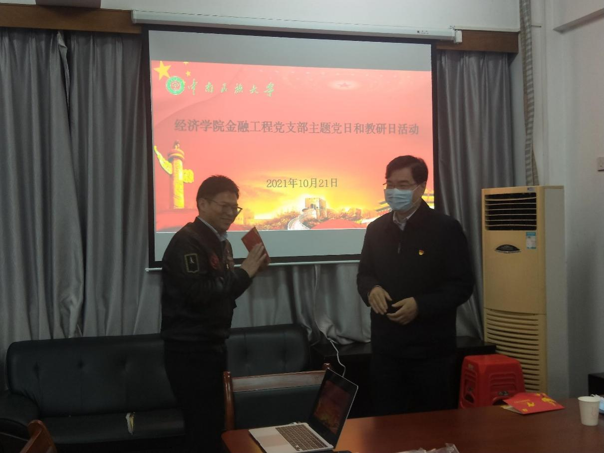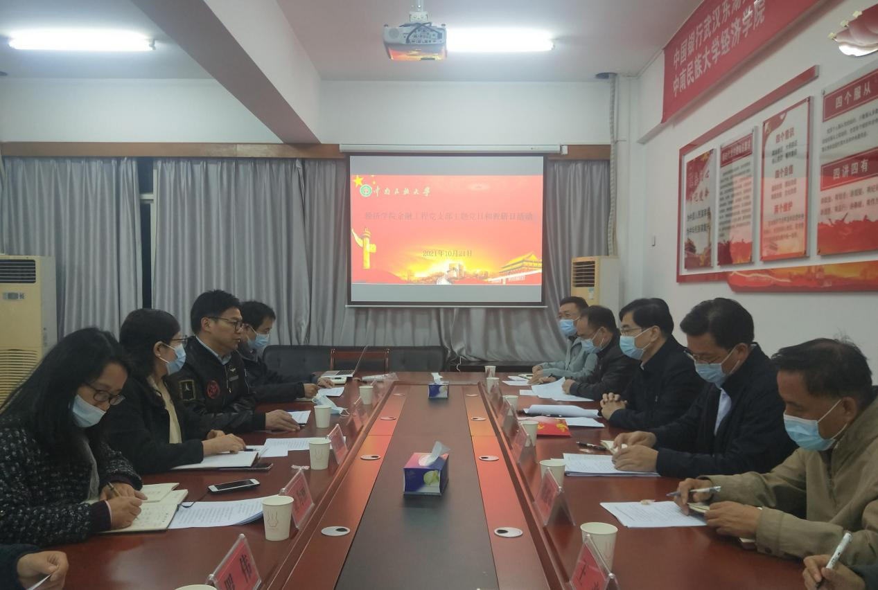10月21日晚,經濟學院金融工程黨支部舉行主題黨日和教研日活動。金融工程黨支部聯系校領導、校黨委副書記、校長李金林,學院黨政負責人柯尊韜、李波,黨支部全體黨員和教研室人員參加活動。活動由金融工程黨支部書記劉繼兵主持。