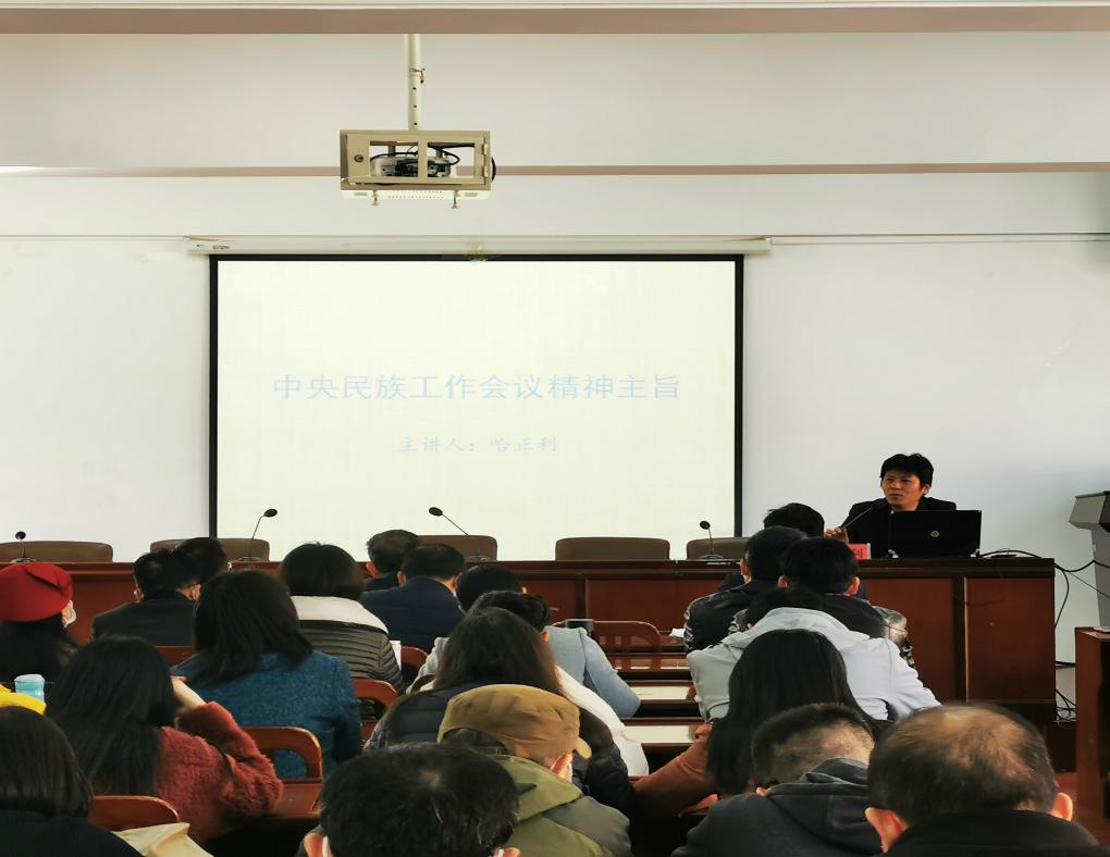 哈正利對中央民族工作會議精神主旨做出全面解讀。他圍繞新時代民族工作的使命與擔當,如何準確把握和全面貫徹黨關(guān)于加強和改進民族工作的重要思想,充分認識鑄牢中華民族共同體意識的重大意義和如何做好鑄牢工作,開展了詳盡的輔導講授。
