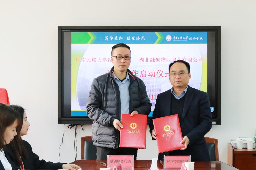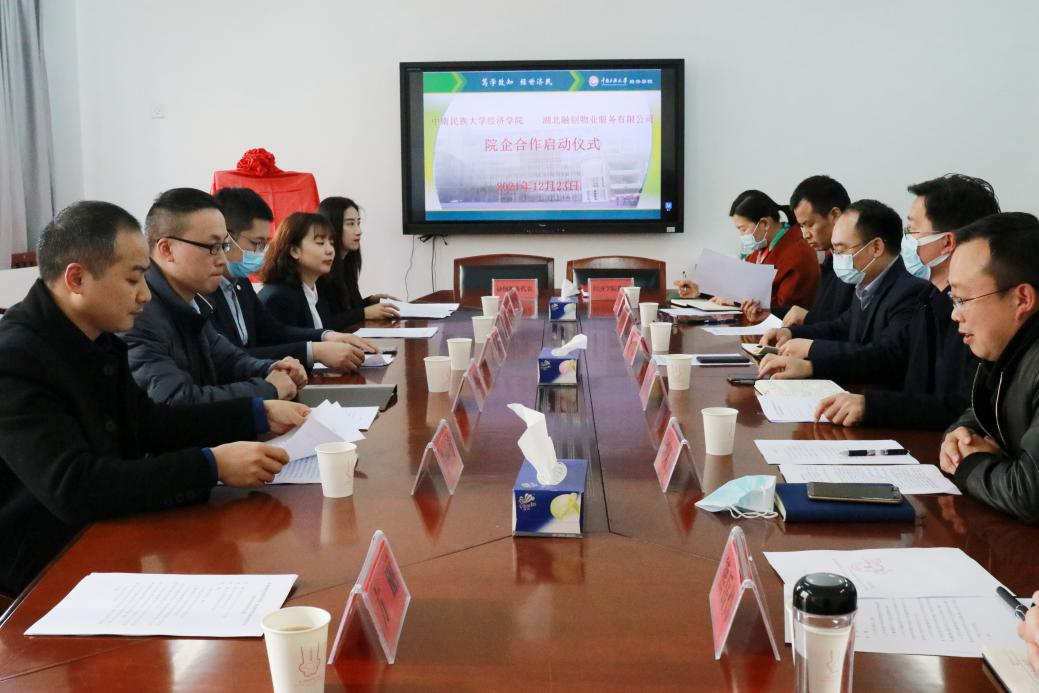 本站訊(記者:劉夢(mèng)玲)為加強(qiáng)院企合作,促進(jìn)高校服務(wù)社會(huì),提高人才培養(yǎng)質(zhì)量,實(shí)現(xiàn)院企共贏發(fā)展,12月23日下午,經(jīng)濟(jì)學(xué)院與湖北融創(chuàng)物業(yè)服務(wù)有限公司于15號(hào)教學(xué)樓1023會(huì)議室舉辦了院企合作啟動(dòng)儀式。融創(chuàng)服務(wù)華中大區(qū)副總經(jīng)理張健偉、市場(chǎng)拓展部總監(jiān)李田驥、非住運(yùn)營(yíng)管理部總監(jiān)李秋香等公司代表出席儀式。經(jīng)濟(jì)學(xué)院黨委書(shū)記柯尊韜、黨委副書(shū)記、院長(zhǎng)李波、黨委副書(shū)記劉君強(qiáng)和教授李彥軍等師生代表參加儀式。會(huì)議由劉君強(qiáng)主持。