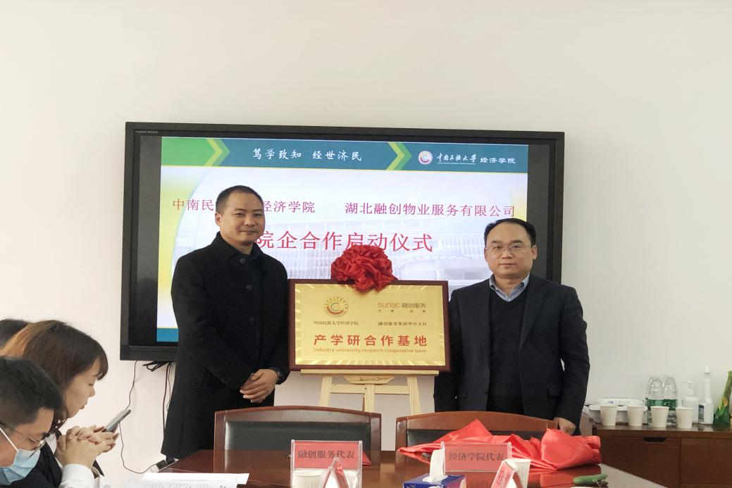 會(huì)上,融創(chuàng)副總經(jīng)理張健偉和院長(zhǎng)李波代表雙方共同簽訂了《湖北融創(chuàng)物業(yè)服務(wù)有限公司與中南民族大學(xué)經(jīng)濟(jì)學(xué)院戰(zhàn)略合作協(xié)議》,管理部總監(jiān)李秋香和院長(zhǎng)李波代表雙方為“中南民族大學(xué)經(jīng)濟(jì)學(xué)院-湖北融創(chuàng)物業(yè)服務(wù)有限公司產(chǎn)學(xué)研合作基地”進(jìn)行了揭牌。