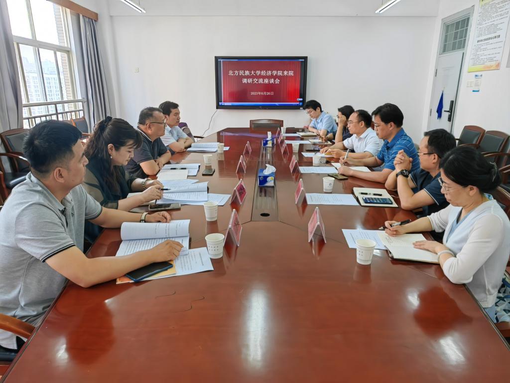 6月26日上午,北方民族大學(xué)經(jīng)濟(jì)學(xué)院劉自強(qiáng)院長(zhǎng)一行到學(xué)院調(diào)研。院領(lǐng)導(dǎo)參加座談,座談會(huì)由學(xué)院黨委副書(shū)記、院長(zhǎng)李波主持。