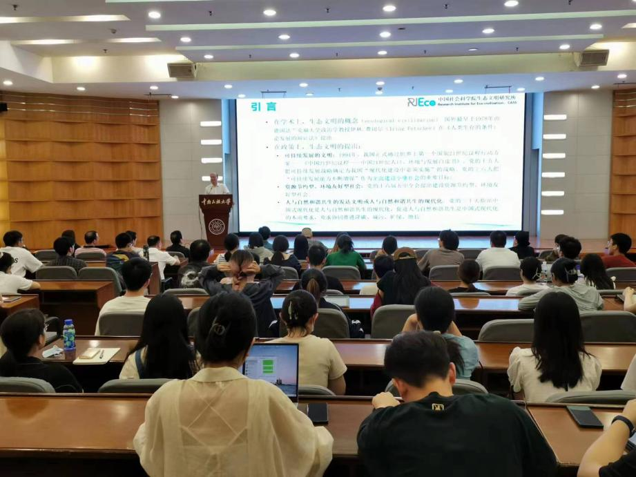 報告會上,楊開忠教授在系統性闡釋“生態文明”概念的基礎上,首先對IPAT恒等式及其變體主要發展與根本局限進行了講解;其次分別從“模型構建”“變量設計”和“生態文明建設價值”三個層面對新生態經濟學綜合框架:I-NEE模型進行了詳細的論述;最后基于I-NEE模型對碳排放的人類驅動因素進行了國際間的比較。講座現場氣氛熱烈,師生積極參與互動。