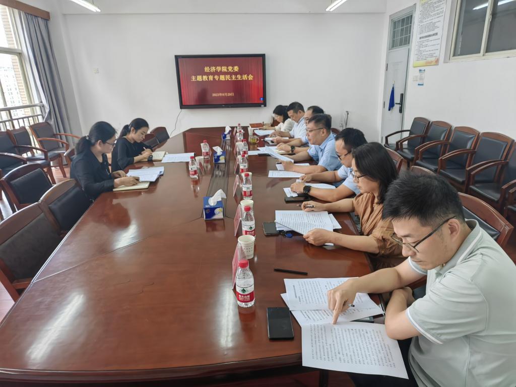 按照學校黨委關于開好黨員領導干部主題教育專題民主生活會的通知要求,8月29日下午,經濟學院黨委召開主題教育專題民主生活會,學校主題教育督導組郭琳、張嫣到會指導工作,經濟學院領導班子成員參加會議。會議由學院黨委書記戴迎峰主持。