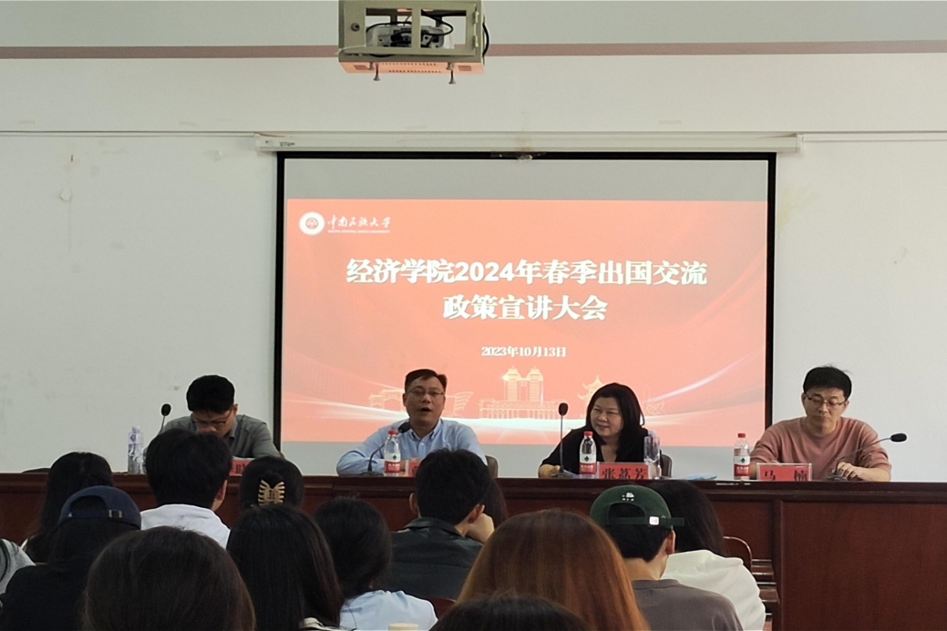 為幫助經濟學院學生全面、深入了解各類出國交流項目及相關支持政策,10月13日下午,經濟學院于15號教學樓1006會議室舉辦了2024年春季出國交流政策宣講會。此次宣講會邀請國際合作與交流處 (港澳臺事務辦公室、國際教育學院)副處長張荔芳、科長李曉辰主講,經濟學院黨委書記戴迎峰、副院長馬楠出席,經濟學院各年級學生代表到場參加。宣講會由戴迎峰主持。