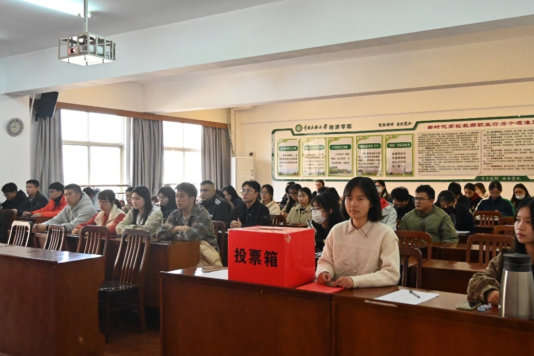 大會審議通過了《中南民族大學經濟學院關于成立研究生會的實施方案》《中南民族大學經濟學院第一次研究生代表大會選舉辦法》及大會總監票人、監票人、總計票人、計票人名單。隨后,經濟學院研究生會主席團候選成員王曉晴、閔堂睿、張康寧、張輝四位同學依次上臺報告工作思路。經過參會代表的投票,選舉產生了第一屆研究生會主席團成員,結果將報學院黨委審批通過后另行公布。