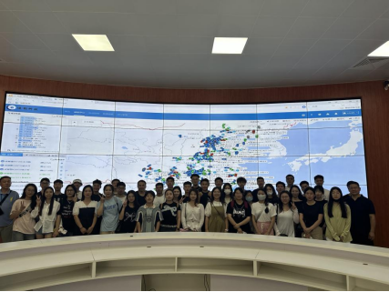 在小龍蝦全球智慧物流數據中心,師生通過巨大的數字顯示屏看到發往全國各地的小龍蝦配送車輛的實時動態,生動準確展示了數字化物流配送的魅力。
