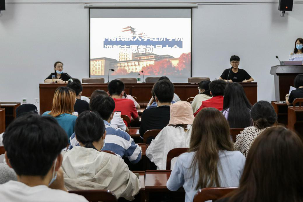 本站訊(記者:李欣雨)為提高迎新志愿者服務水平,給新生提供更高效便捷的報到體驗,9月18日晚,經濟學院于15號教學樓1006會議室召開迎新志愿者動員大會。經濟學院新生輔導員徐瑩、志工部學生干部、全體迎新志愿者及新生班主任助理參加會議。