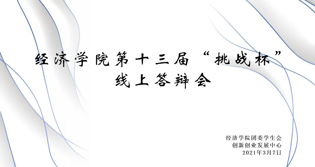 本站訊(記者:肖鈺婷)為強化學生科研實踐能力,推選優秀競賽項目參與校級角逐,3月7日上午,經濟學院舉行第十三屆“挑戰杯”答辯會。經濟學院教師劉繼兵、李彥軍、王麗娟、劉家悅及團委書記高無盡擔任評委,共14支參賽隊伍參與本次線上答辯。