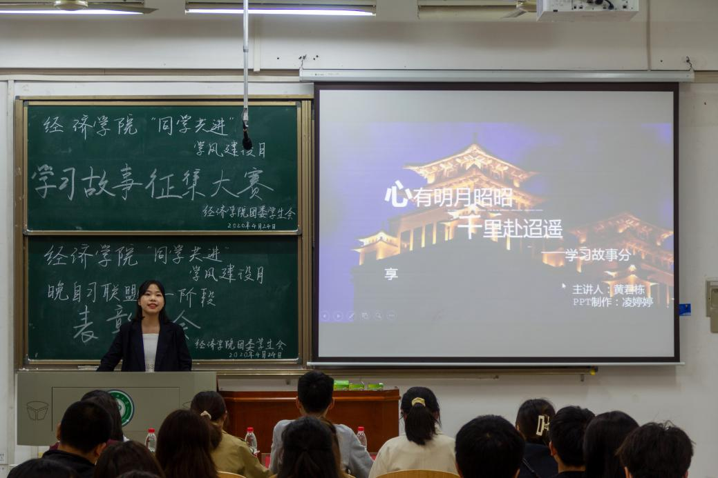 (本站訊:姜權(quán)卿)為強(qiáng)化“同學(xué)共進(jìn)”學(xué)風(fēng)建設(shè)實(shí)施效果,擴(kuò)大活動(dòng)影響力,激勵(lì)學(xué)生繼續(xù)振奮精神、努力學(xué)習(xí),4月24日晚,由經(jīng)濟(jì)學(xué)院團(tuán)委學(xué)生會(huì)學(xué)習(xí)部主辦的“同學(xué)共進(jìn)”學(xué)風(fēng)建設(shè)月之學(xué)習(xí)故事分享暨階段表彰大會(huì)于15號(hào)教學(xué)樓108教室順利舉行。2017級(jí)保研優(yōu)秀學(xué)生代表張俊龍、張琴麗、郭家麗、王姣姣以及2019、2020級(jí)“晚自習(xí)聯(lián)盟”活動(dòng)參與者到場(chǎng)參加會(huì)議。