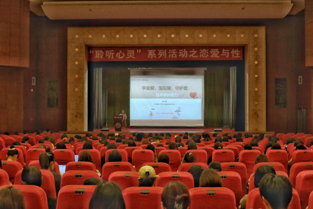 本站訊(記者:黃軒軒)為引導學生樹立正確的戀愛觀,促進學生心理健康成長,4月29日晚,經濟學院于學術會堂舉辦“聆聽心靈”系列活動之戀愛與性主題講座。講座邀請由武漢理工大學心理健康教育中心教師唐光蓉主講,經濟學院心理工作站副站長、2017級輔導員張竹云出席,學院各年級學生積極到場參加。