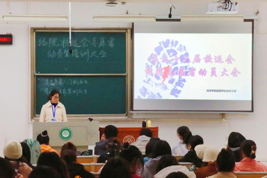 本站訊(記者:曾永樂)為順利開展校運會志愿者工作,做好后勤保障工作,11月7日下午,經濟學院于15號教學樓219教室召開了第三十六屆校運會志愿者動員暨培訓大會。經濟學院全體參賽運動員和志愿者到場參加會議,會議由學院團委學生會志工部主持。