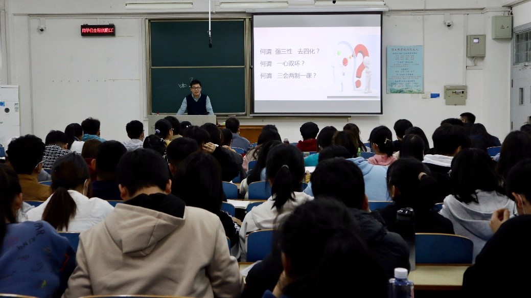 生物醫學工程學院輔導員安樹庭在《<矛盾論>思想在學生干部成長中的應用》團課中,從大、小兩種理論、《矛盾論》的主要觀點、學生工作中的矛盾、學生干部的成長四個方面進行細致指導。他指出團學干部必須牢牢把握大、小理論,以大理論為思想前提,將小理論落實到實踐中,學會結合矛盾的觀點進行深層思考,力求解決實際問題并從中獲得成長。他希望學員們牢記學生干部的身份意識,不沉迷于碎片化的快樂,做到以身作則與勤學苦學相結合;通過加強理論學習,提高政治站位、理論水平和形象展示力;以“組織發展的需要是什么”為立足點,做好個人規劃,錘煉學生干部優秀精神品質,不斷增強工作本領。
