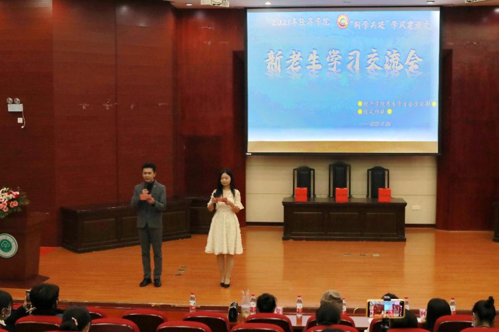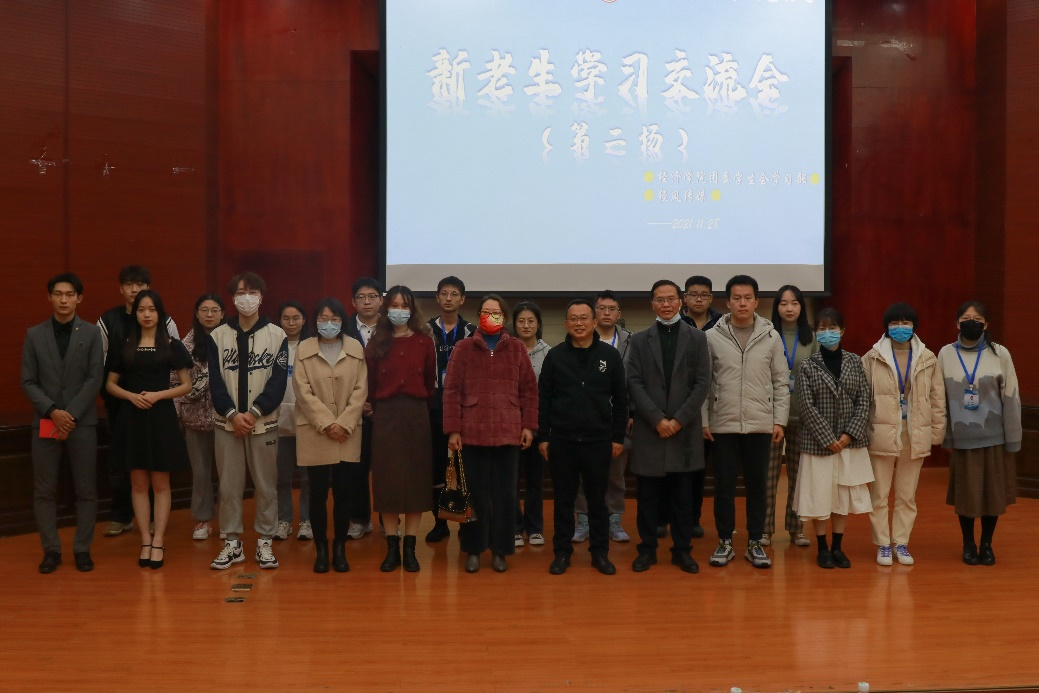 本站訊(記者:馬境遙 喬潤典)為幫助新生快速適應大學學習生活,推進學院“同學共進”學風建設,11月26日與28日,經濟學院于模擬法庭舉辦了“同學共進”學風建設系列活動之新老生交流會,邀請六位優秀學生代表進行經驗分享。經濟學院黨委副書記劉君強、各年級輔導員和2021級部分班導師參加交流會,2021級全體同學通過現場交流和觀看直播參與活動。