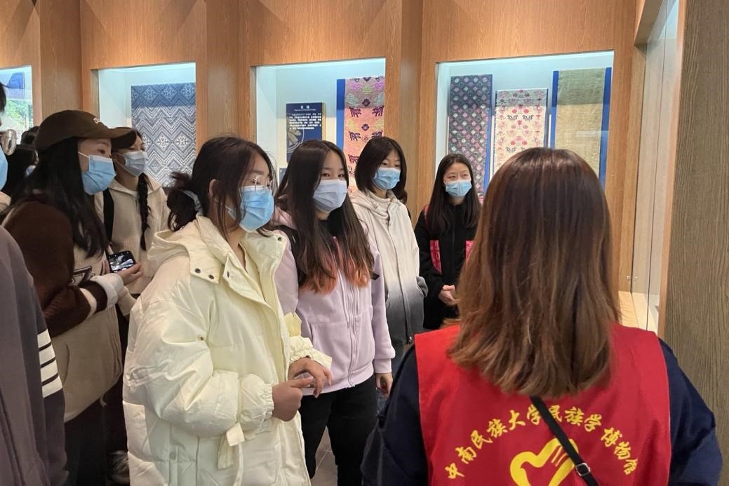 實踐課開始前,培訓班組織學員們參觀學校民族學博物館并共同制作主題心愿展板。在遵守學校疫情防控規定條件下,部分團校學員走進民族學博物館,深入學習民族文化與優秀民族精神,進一步鑄牢中華民族共同體意識,交流各民族的歷史淵源及生活習俗,深刻領悟民族團結的重要性與必要性。本次實踐課還準備了以藍天為背景的活動展板,學員們在紙上寫下黨的二十大精神感悟及對未來的心愿寄語,并將其折成紙飛機,粘貼在藍天展板上,寓意將美好祝福放飛在祖國的藍天下,共同展望祖國與個人的美好未來。
