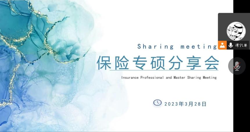 2023年3月28日晚,保險學專業為20級和 21級同學開展了一場保險專碩士線上宣講會。本次會議邀請到六位校友,分別是研究生就讀于湖南工商大學的15級農通理、對外經濟貿易大學的16級吳東陽、中南財經政法大學的17級曾智仁、廣東財經大學的18級陳夢潔、西南財經大學的18級龔玉、東北財經大學的18級袁湘鈺。他們從如何擇校、各自學校保險專碩的專業特色與就業方向、如何理性對待數學科目等方面進行了分享,為同學們答疑解惑。