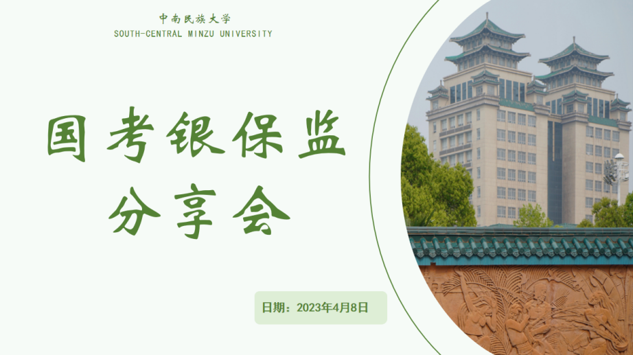 2023年4月8日晚,保險學專業開展了一場國考銀保監線上宣講會。本次會議邀請到現就職于人民銀行和湖北、廣西、寧夏、河南、貴州五個片區銀保監分局的十三位校友,分享其報考原因、備考經驗和工作感受,同學們收獲滿滿。